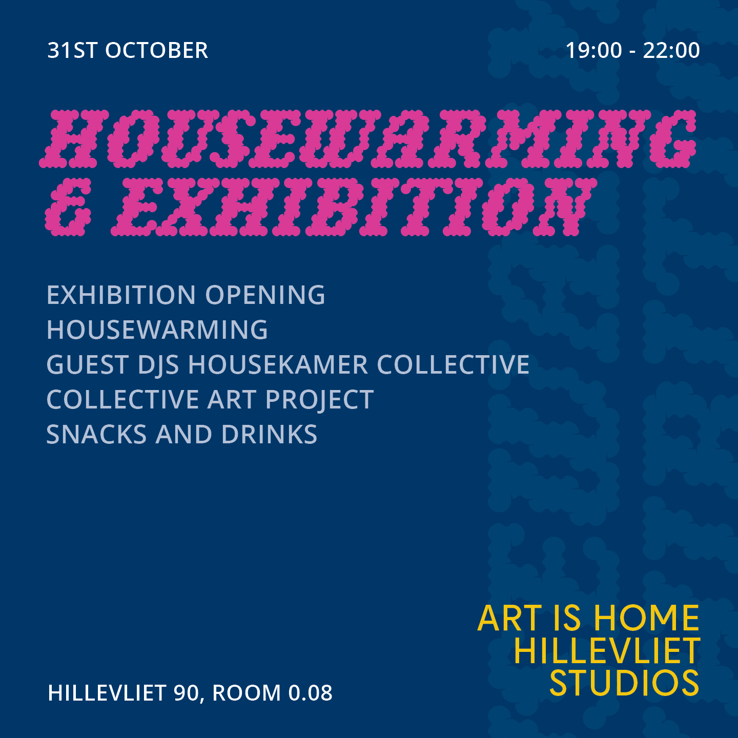What: Join us for Art is Home Housewarming & Exhibition Opening at our new Hillevliet Studios.